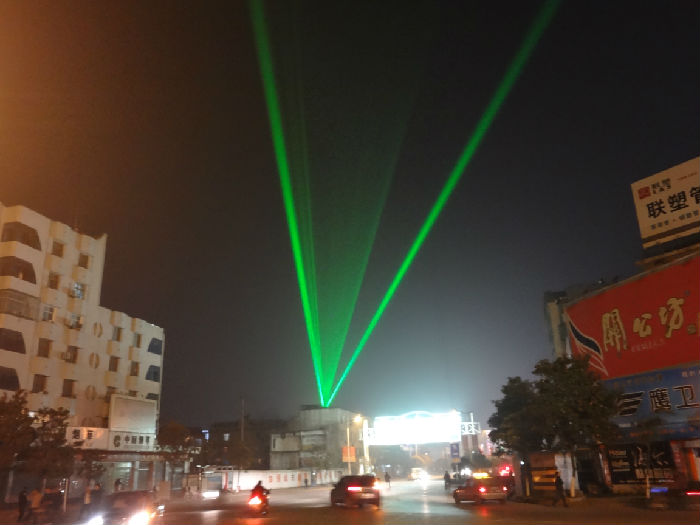 概況:大功率綠激光空中掃描系統(tǒng),集激光應(yīng)用技術(shù)、計算機圖像處理技術(shù)和超高速振鏡控制技術(shù)于一體,將純正、炫麗的綠激光在城市上空變幻出動態(tài)的線、面、旋轉(zhuǎn)體及任意編輯的圖形、文字。靜,如定海神針;動,則流光溢彩,視覺效果強勁、震憾,具有王者風(fēng)范,是都市標志性建筑、著名景區(qū)的點睛之“筆”,也是廣告宣傳、大型舞臺晚會及城市亮化工程中高品位的象征。在城市高層大廈頂端,用大功率固體激光器進行全方位的掃描。可以在數(shù)公里以外觀賞到獨特的激光夜景。通過激光系統(tǒng)以強烈炫目的綠激光束不斷探射在夜空中,可平行直射、旋轉(zhuǎn)放射、有節(jié)奏的變換光束方向,使該建筑物成為城市中耀眼的地標及獨特的城市夜景。激光地標根據(jù)其工作特性分為“投射型激光地標”和“表演型激光地標”兩種。 系統(tǒng)安裝在建筑物頂端,投射型激光地標:激光束經(jīng)過光學(xué)發(fā)射器長距離投射,其特點是:在晴好天氣,可在半徑6到12公里以外看到激光束,(視所選用激光器的功率而定,比如:30瓦激光器可視半徑為6公里以上,而50瓦激光器的可視半徑達12公里以上。)換言之,可以看到激光束的圓形區(qū)域的直徑為12至24公里,影響范圍極大。而且激光的色彩純正,光束掃描過程莊重,有“一覽眾山小”的王者風(fēng)范。表演型激光地標:激光束經(jīng)過高速機械掃描器發(fā)射,可以將單束激光束擴展成多束,在計算機光學(xué)系統(tǒng)的控制下,形成花樣繁多的輸出方式,可以實現(xiàn)多光束的翻滾、變幻,可以和音樂同步,可以在建筑立面、甚至云層上寫簡單的文字和圖形,起到廣告的效果,其娛樂性極強。產(chǎn)品現(xiàn)狀:隨著激光技術(shù)的成熟,激光水幕和激光地標的可靠性、維修便利性、電耗都有了大幅度的改善。比如激光地標,在正常工作條件下,10000小時為極低故障期。以每天工作3小時計,,電耗低于5千瓦。風(fēng)冷10w-40w水冷10w-60w 戶外激光燈、戶外鐳射燈、戶外地標激光燈、地標激光燈的核心部件為高功率激光器,激光具有方向性強、單色性、相干性強,激光地標正是應(yīng)用了上述特性。其在城市景觀亮化的作用是不可比擬和替代的。